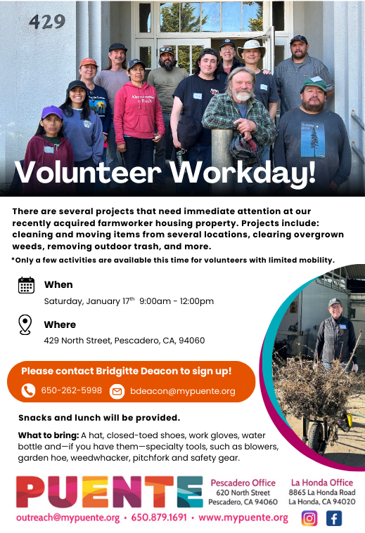 We are so excited to announce the return of La Sala hosted every Thursday, at the Pescadero Community Church. This is a place where the community, older than 14, can gather to socialize, eat and enjoy activities together. If you wish to join, please register before every Thursday by contacting Irma Rodriguez at 650-231-6729
