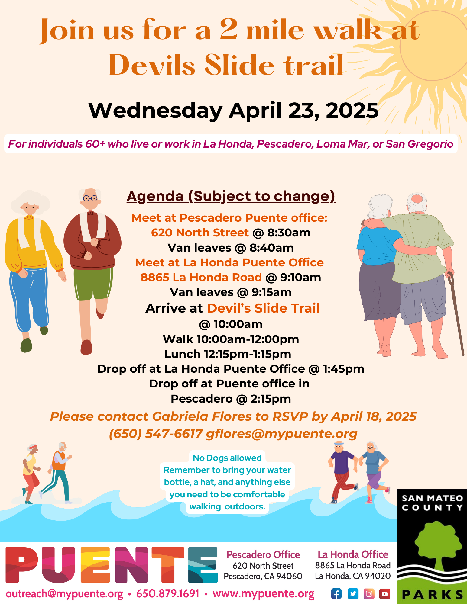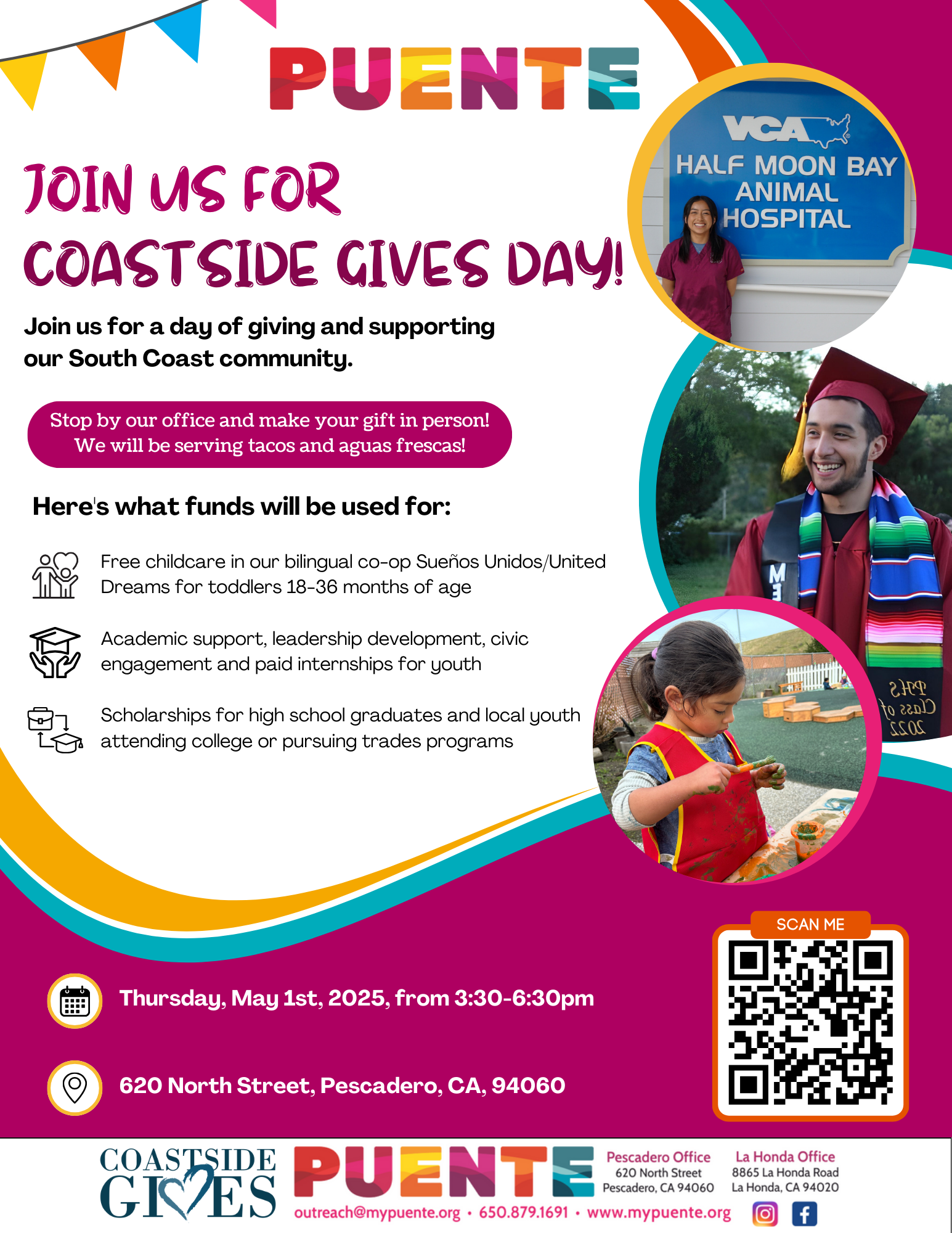 We are so excited to announce the return of La Sala hosted every Thursday, at the Pescadero Community Church. This is a place where the community, older than 14, can gather to socialize, eat and enjoy activities together. If you wish to join, please register before every Thursday by contacting Irma Rodriguez at 650-231-6729 |